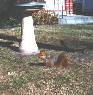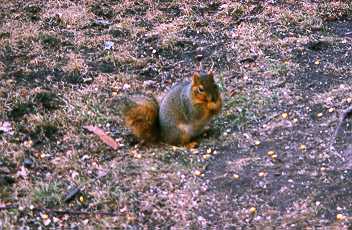 He just finished eating and is taking a break by nibbling little corn kernels he found on the ground, or…